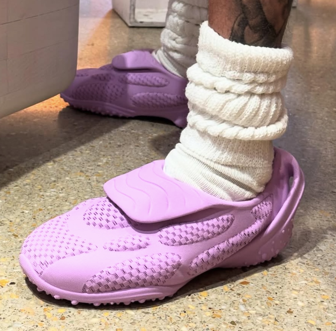 В своем Instagram Джастин Бибер представил новую модель кроссовок своего бренда SKYLRK. Модель вдохновлена футбольными бутсами, получила дышащий верх и откидной язычок. Кроссовки отличаются и широкой подошвой и округлым силуэтом, как и предыдущие элементы гардероба, выпущенные брендом SKYLRK. В своем Instagram Бибер продемонстрировал модель в нежно-розовом оттенке, а его супруга Хейли поделилась кадрами в модели белого цвета. Сколько будет расцветок в коллекции — неизвестно.